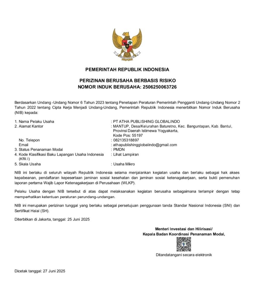 Atha Pubdalah penerbit independen yang bergerak di bidang penerbitan buku ilmiah, akademik, pendidikan, dan umum. Berdiri dengan semangat untuk mendorong literasi dan produktivitas penulisan di Indonesia, kami hadir sebagai mitra terpercaya bagi penulis dari berbagai latar belakang mulai dari mahasiswa, dosen, guru, peneliti, hingga penulis umum. Kami berkomitmen untuk memberikan layanan penerbitan yang profesional, cepat, dan berkualitas, dengan mengedepankan keaslian karya, legalitas resmi, serta tampilan buku yang layak edar baik secara cetak maupun digital.
